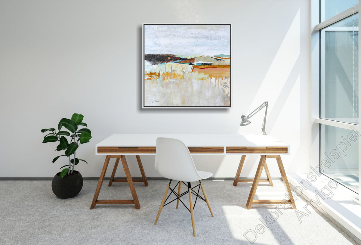 *Suchbegriffe: abstraktes Ölgemälde 80x80, moderne Landschaftsmalerei abstrakt, zeitgenössische Kunst quadratisch, Ölbild Pastelltöne, expressives Gemälde großformat, abstrakte Küstenlandschaft, Farbfeldmalerei horizontal, Originalkunst signiert, abstraktes Bild Wohnzimmer, moderne Wandkunst Öl*
