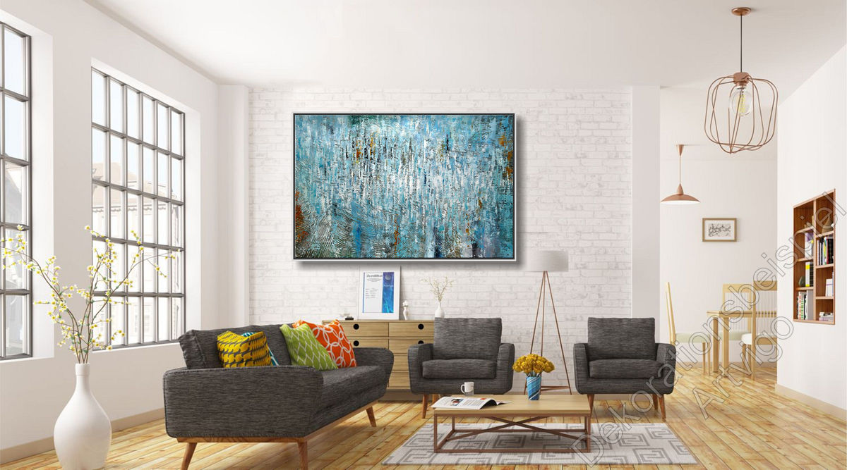 Beim Betrachten vermittelt das Gemälde Ruhe und zugleich Energie. Es wirkt meditativ, fast wie ein Blick in eine andere Sphäre, gleichzeitig aber auch lebendig und modern. Man spürt eine gewisse Frische, Klarheit und Unendlichkeit, die den Raum öffnet.