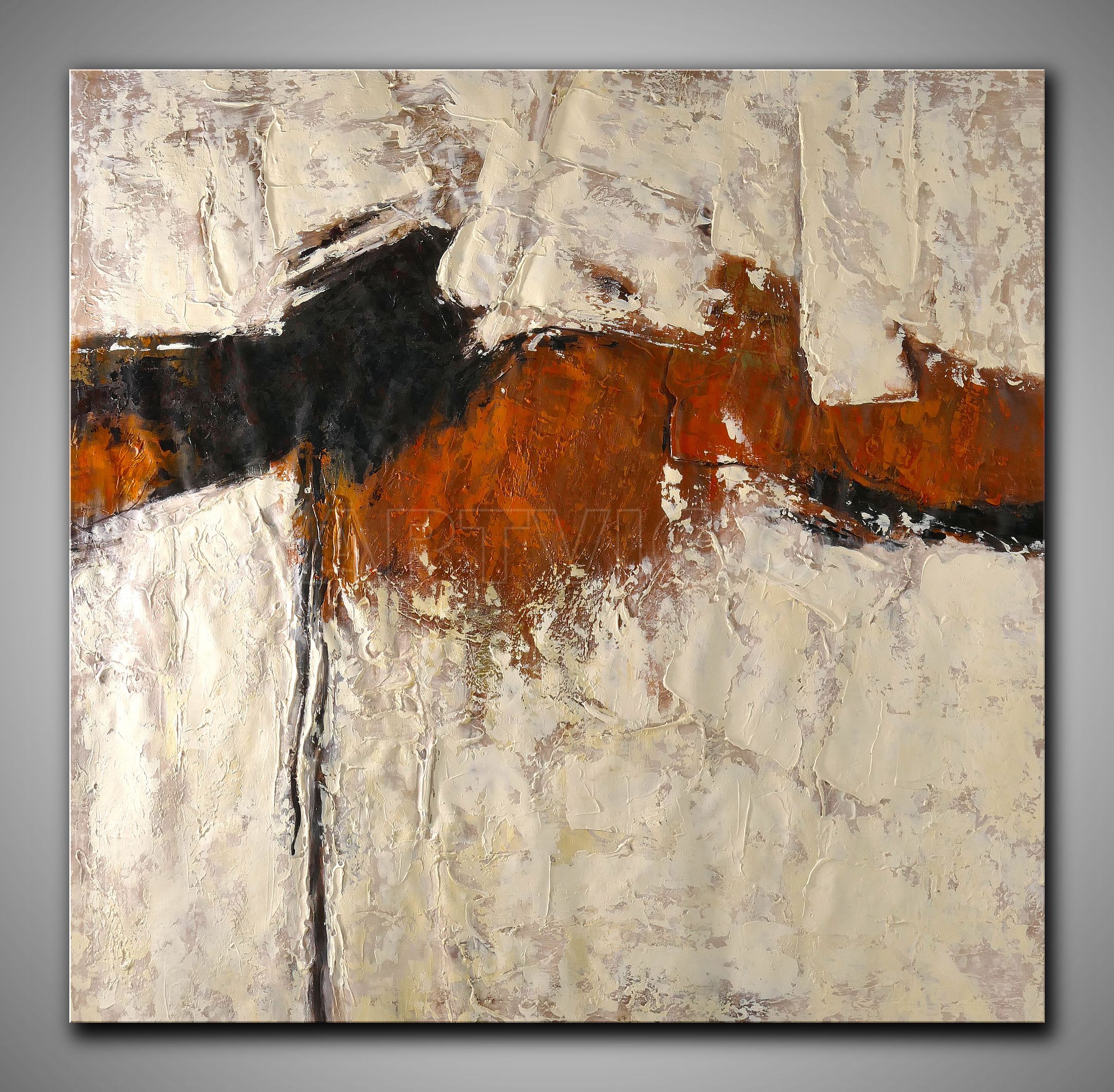 Dieses kraftvolle abstrakte Ölgemälde im Format 100 x 100 cm fasziniert durch seine erdige, warme Farbpalette und außergewöhnliche Textur. Das Werk ist horizontal in zwei Hauptbereiche gegliedert: Die obere Hälfte zeigt eine helle, cremefarbene bis goldbeige Fläche mit reliefartiger, pastöser Oberflächenstruktur, die an verwitterte Wände oder antike Fresken erinnert. Subtile Spuren von Violett und Grau verleihen dieser Zone zusätzliche Tiefe. Ein markantes dunkles Band aus Schwarz und tiefem Anthrazit trennt die Komposition und schafft dramatische Spannung. Die untere Hälfte dominieren intensive Rost-, Orange- und Rottöne, die mit erdigen Braunnuancen verschmelzen. Die stark strukturierte Malweise mit Spachtel- und Kratztechniken erzeugt eine starke dreidimensionale Wirkung und verleiht dem Kunstwerk einen archaischen, zeitlosen Charakter.