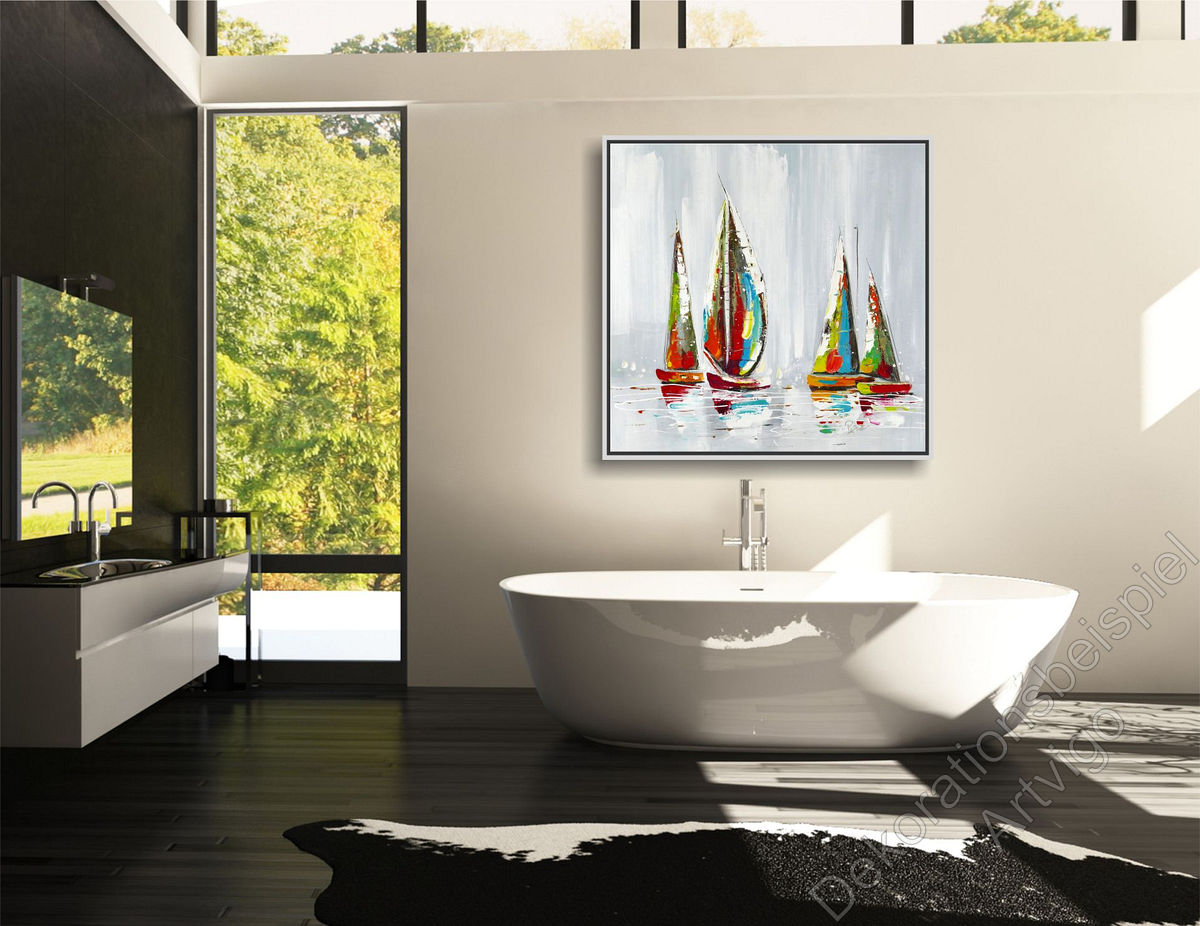 Mit seiner ausgeprägten Spachteltechnik, den plastischen Strukturen und den kunstvollen Reflexionen im Wasser ist dieses Werk ein echtes Statement Piece. Das maritime Motiv bringt Freiheit, Weite und Leichtigkeit in jeden Raum und passt perfekt zu modernen, minimalistischen oder nordisch inspirierten Interieurs.
